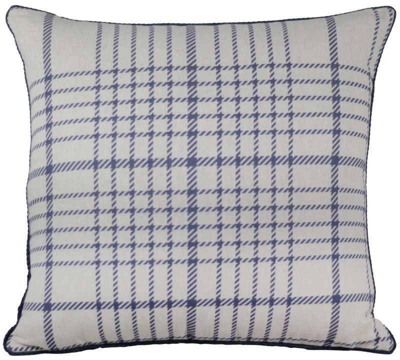 ALMOFADA EM LINHO CRU 52 X 52 ESTAMPADA COM XADREZ COM CORDÃO AZUL COD 424-91