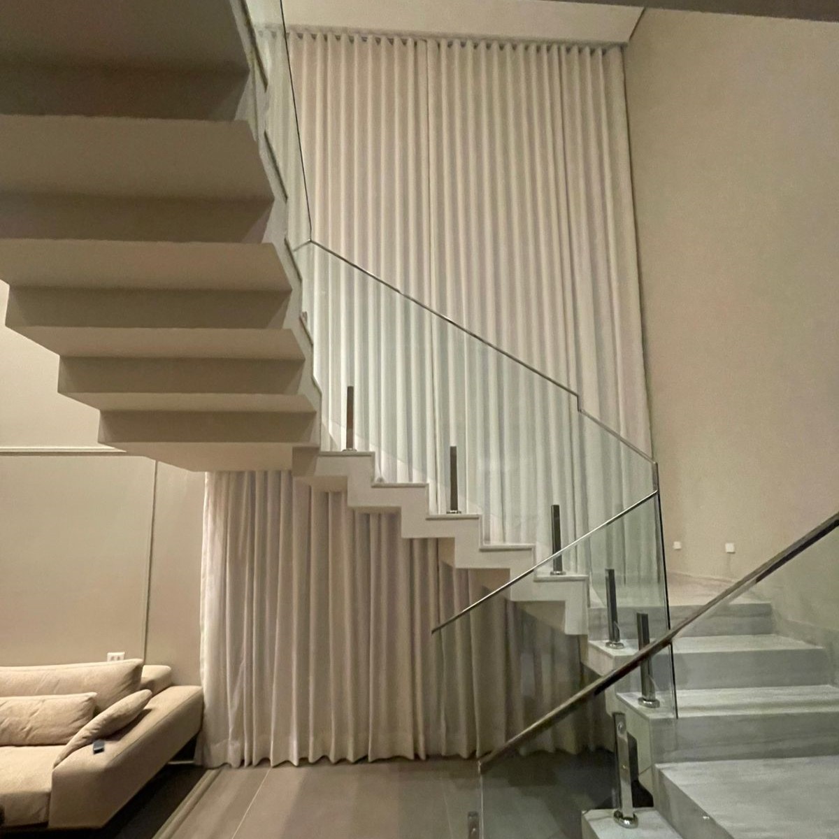 Cortina Modelo Wave com Varão Retangular Itália, com linho e forro de Microfibra. Sob medida