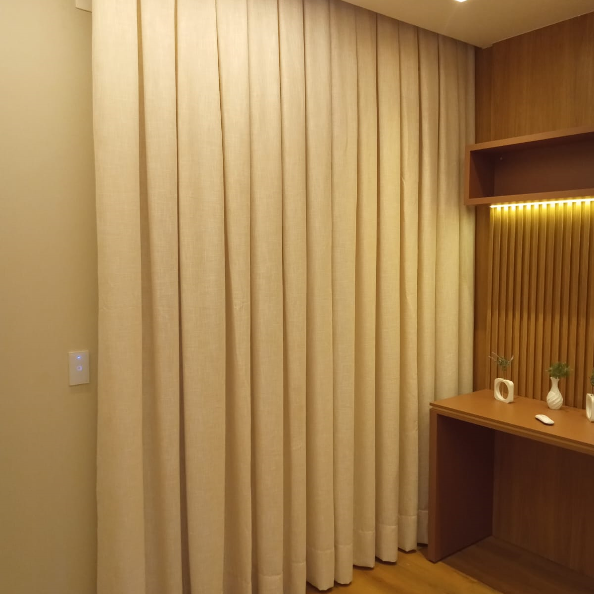 Elegância em seu quarto. Crie um ambiente único com nossas cortinas sob medida para quartos. Sofisticação e praticidade em um só produto.