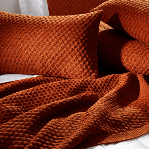 Na aconchegante cabana de madeira, uma peseira de tricô repousa suavemente sobre a cama, com seus pontos delicados e texturas quentes trazendo um toque artesanal e acolhedor ao ambiente.